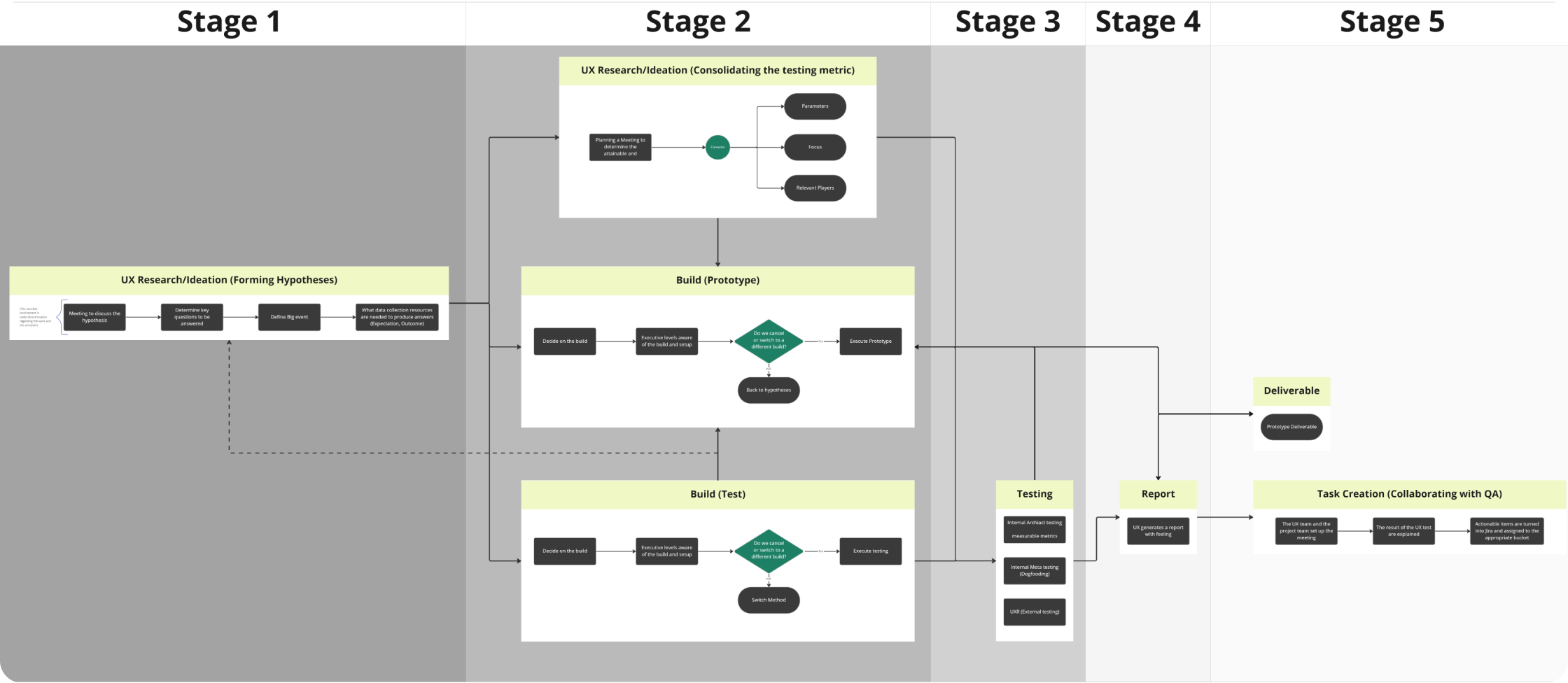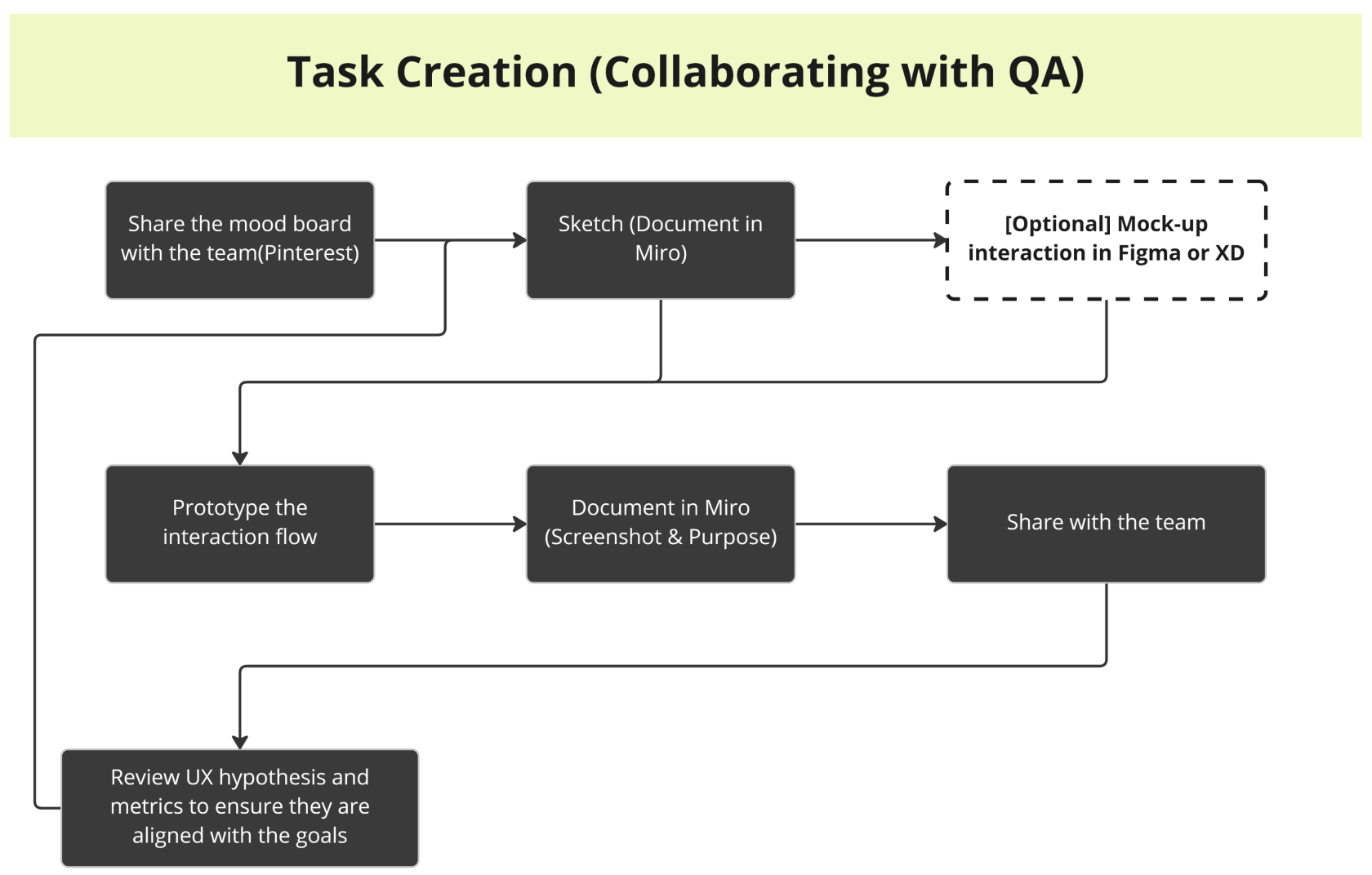 The high-level user flow was conducted to carry out user test with game designers. This approach addressed asking engineers invested too much of their time before building a feature inside the metaverse.