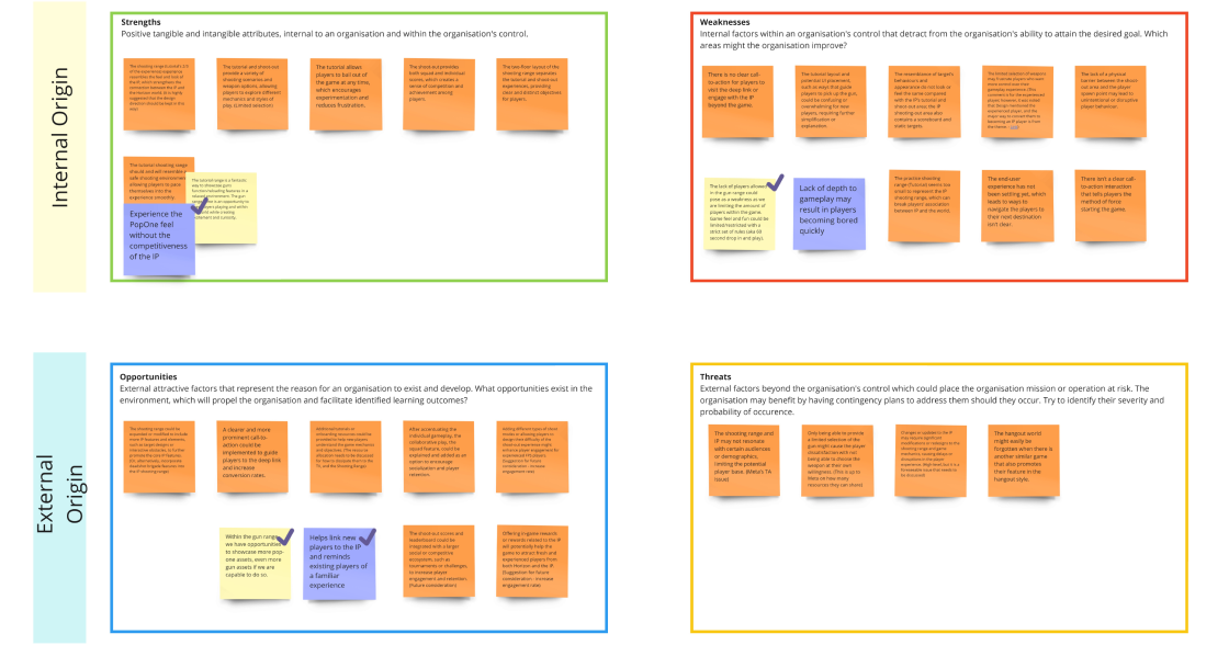 This SWOT analysis example is from the project Meta Horizon Worlds Population: One.